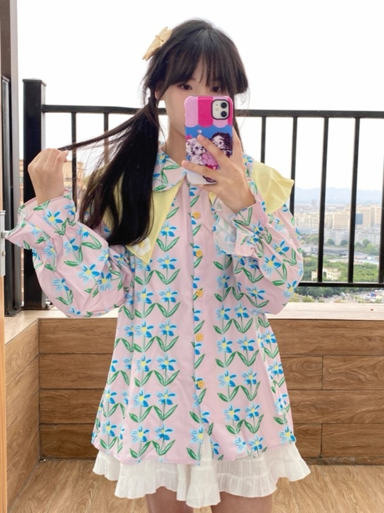 ワンピース トップス シャツ ブラウス レース ミニスカ 長袖 レディース